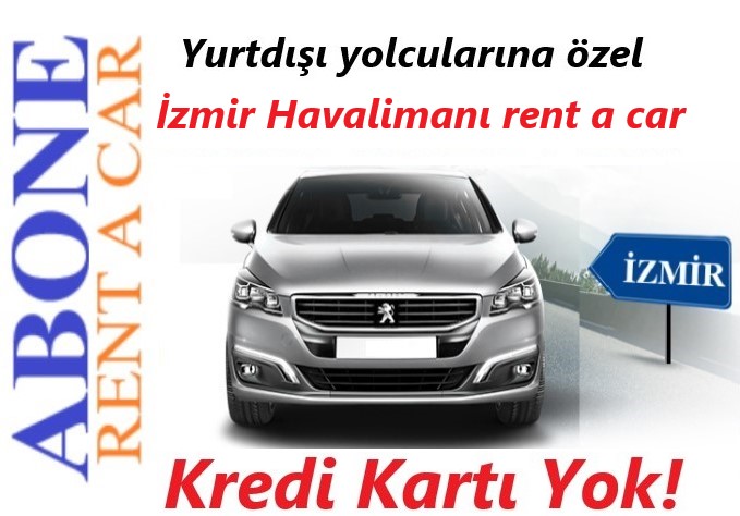 İzmir'e Adnan Menderes Havalimanı yoluyla geldiğinizde Abone rent a car son model, bakımlı ve kaskolu araçlarla sizleri karşılamaktadır. Yurtdışından gelen misafirlerimiz Kredi Kartsız araç araba kiralama ve online rezervasyon yapabilir, araba ayırtabilirler.